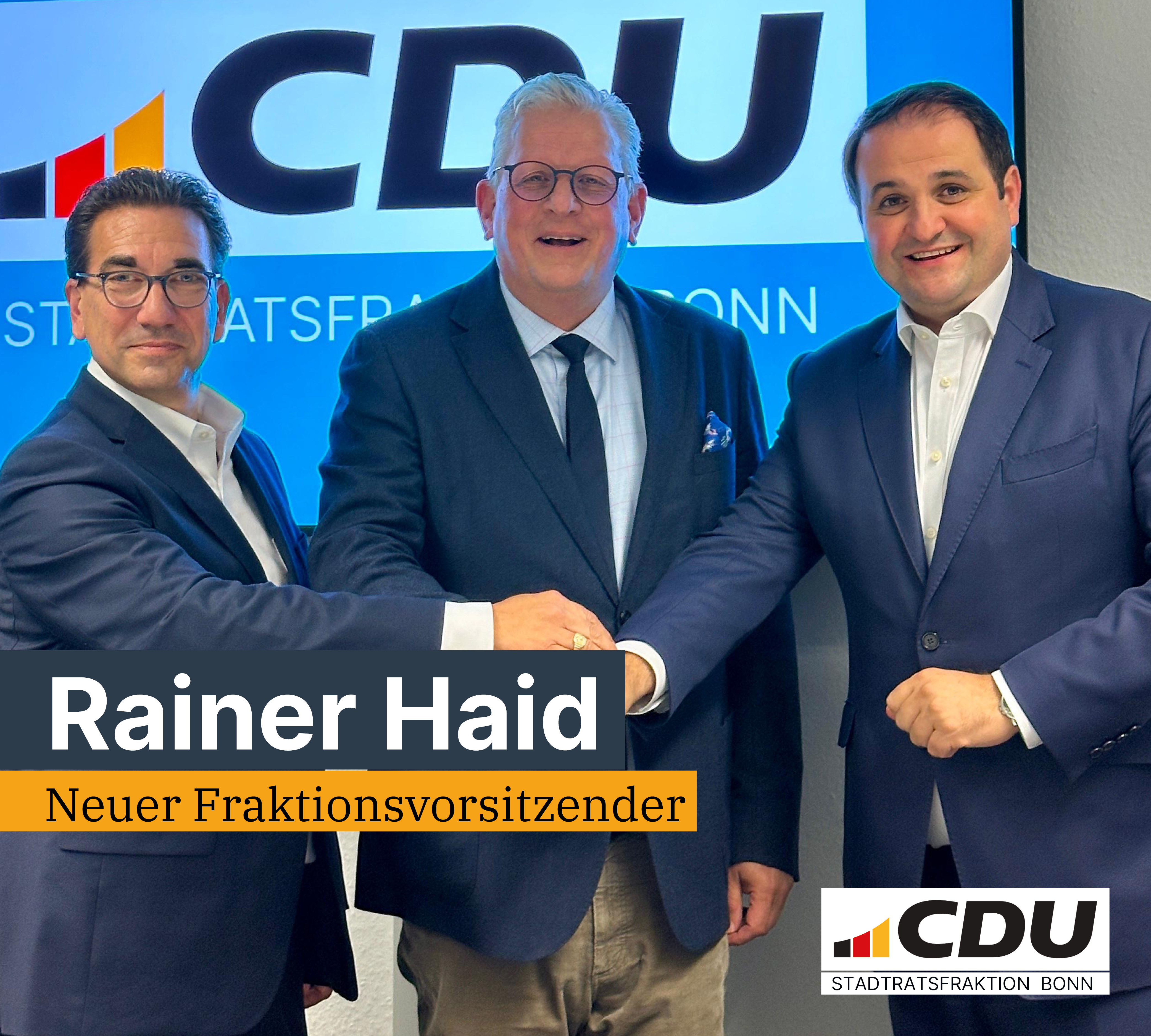 Die CDU-Ratsfraktion Bonn hat am Dienstagabend, 7. Oktober 2025, in einer Sondersitzung Rainer Haid zu ihrem neuen Fraktionsvorsitzenden gewählt. Haid setzte sich in geheimer Abstimmung mit 14 zu 7 Stimmen gegen seinen Kollegen Bert Moll durch. Die Sitzung leitete der amtierende Fraktionsvorsitzende und designierte Oberbürgermeister Guido Déus, der der Fraktion aufgrund seines neuen Amtes künftig nicht mehr als gewähltes Mitglied angehören wird.